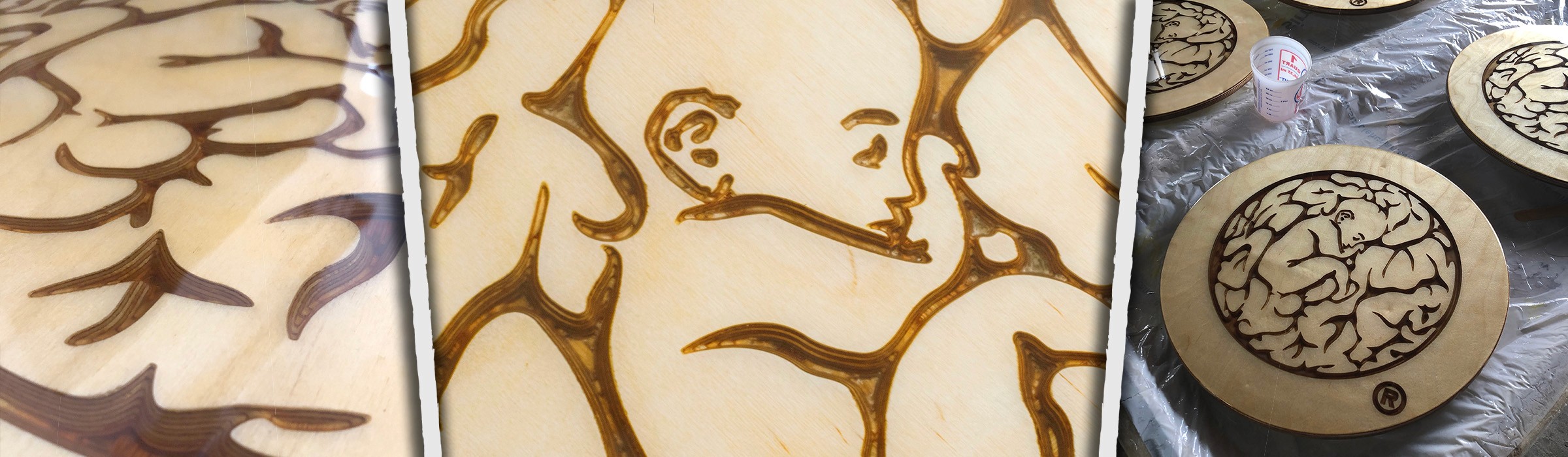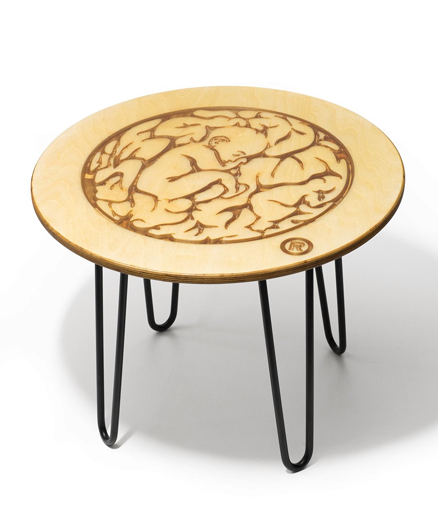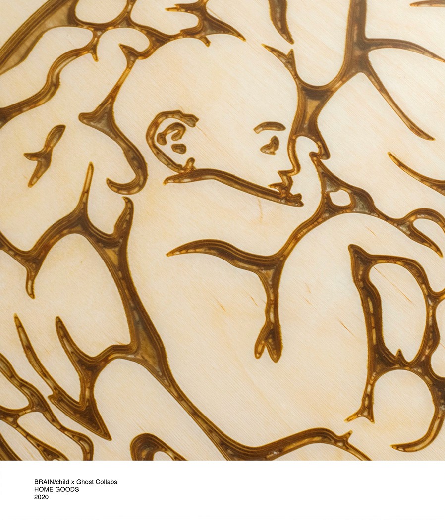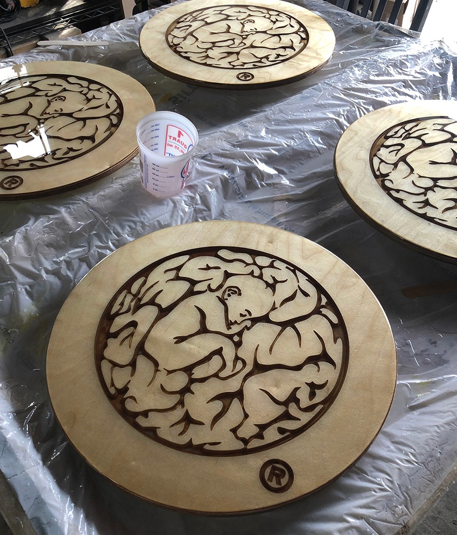 Collaborated with Boston-based streetwear brand BRAINCHILD to produce limited-run side tables. Their provided graphic was carved by CNC out of 3/4" Baltic Birch plywood then filled with clear epoxy.