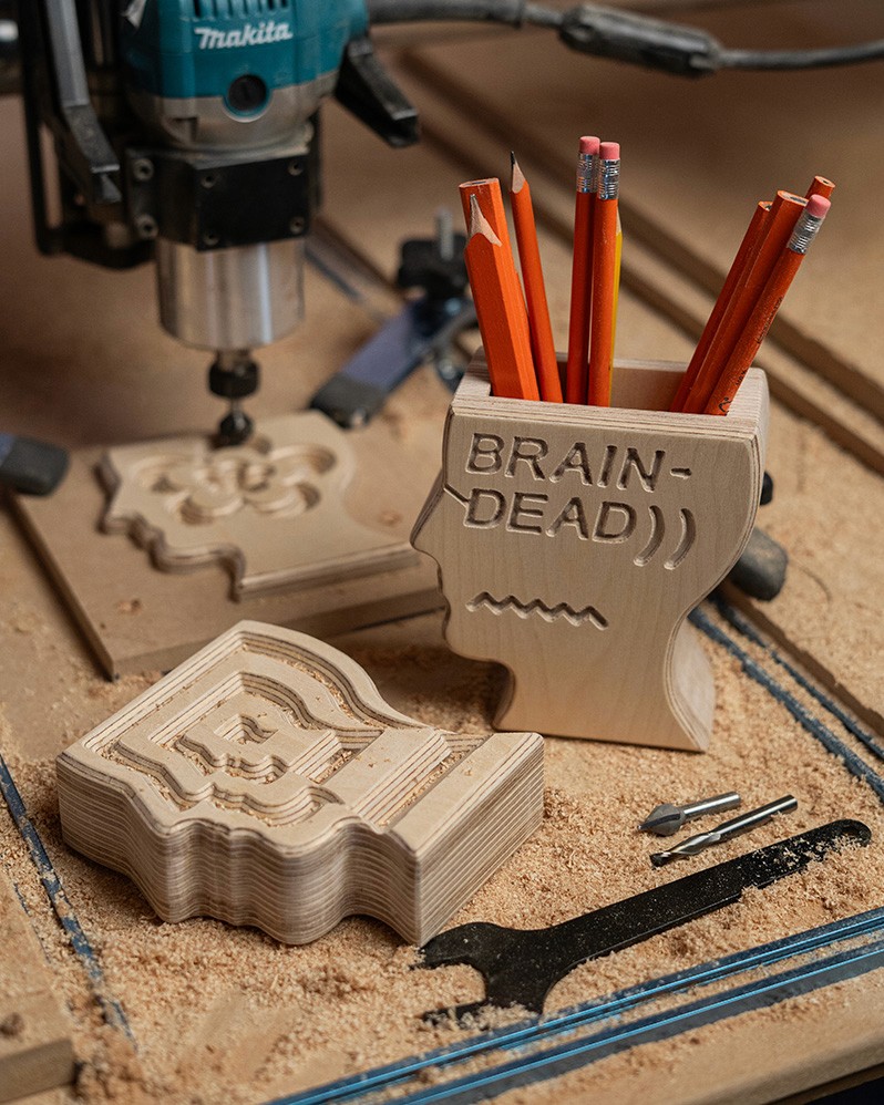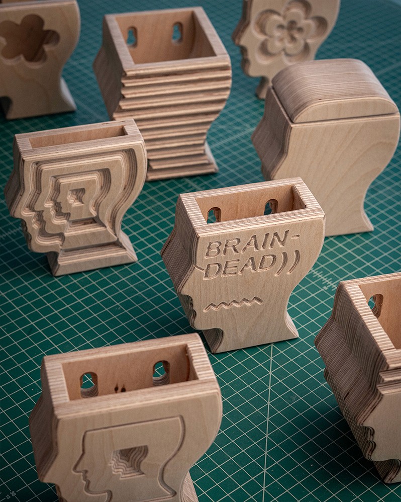 Personal build with no communication or collaboration with streatwear brand Braindead. Designed a home good "Studio Storage" collection using their iconic profile head logo.