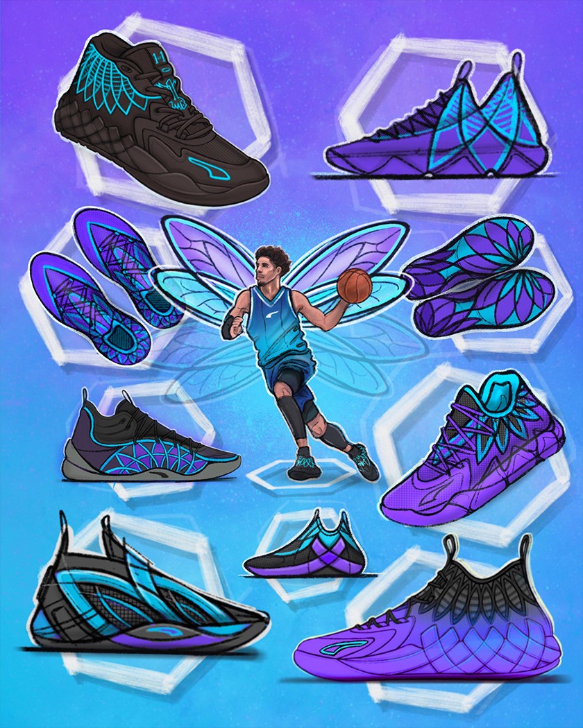 Illustrations that accompanied various footwear drops