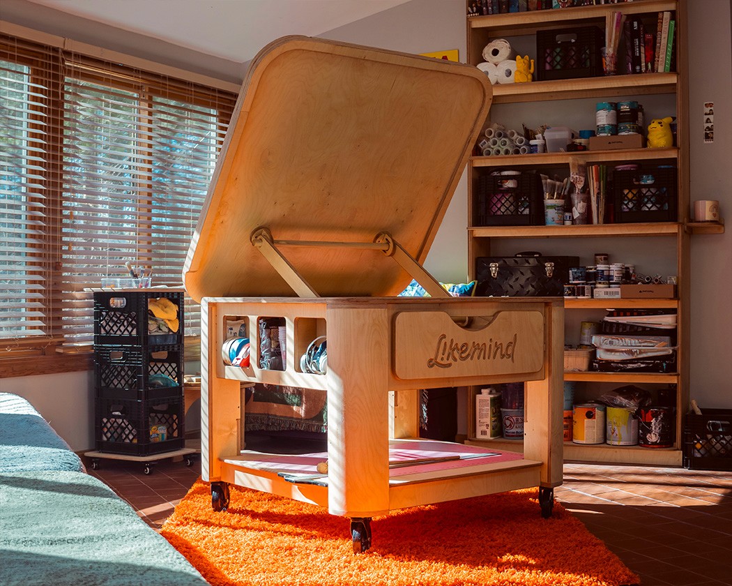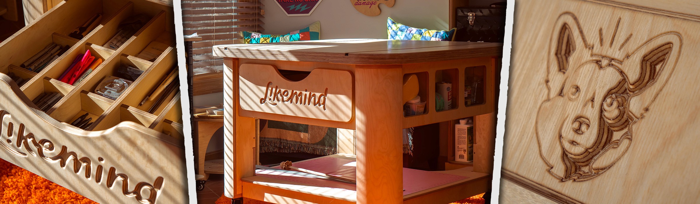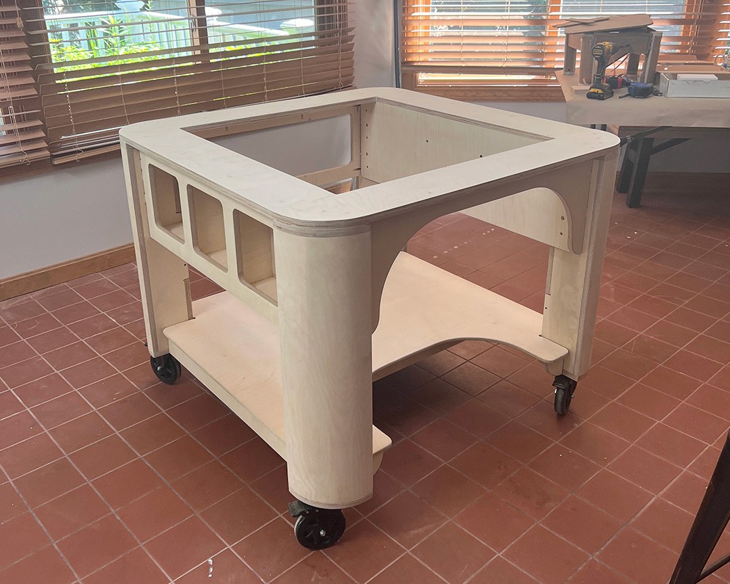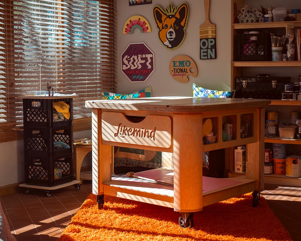 Designed and produced a custom signpainting drafting table for Likemind Design. Has an adjustable top for multiple angles with T-track rails for workholds.
