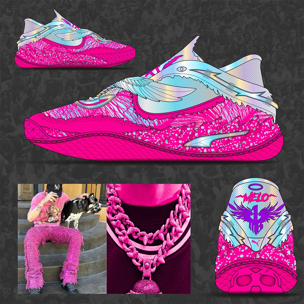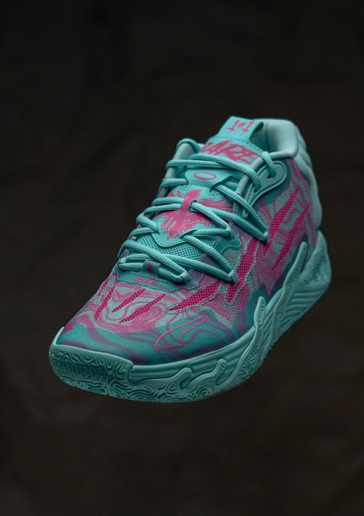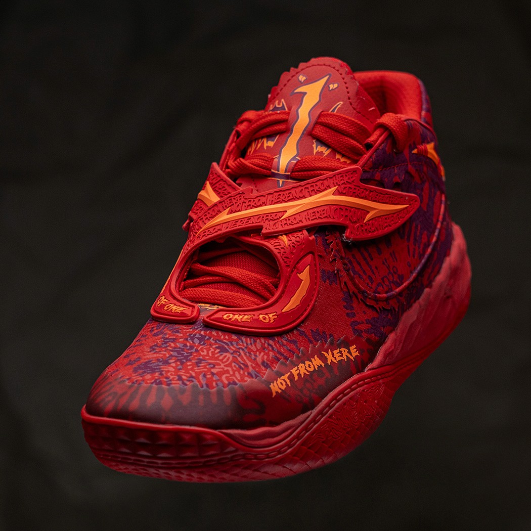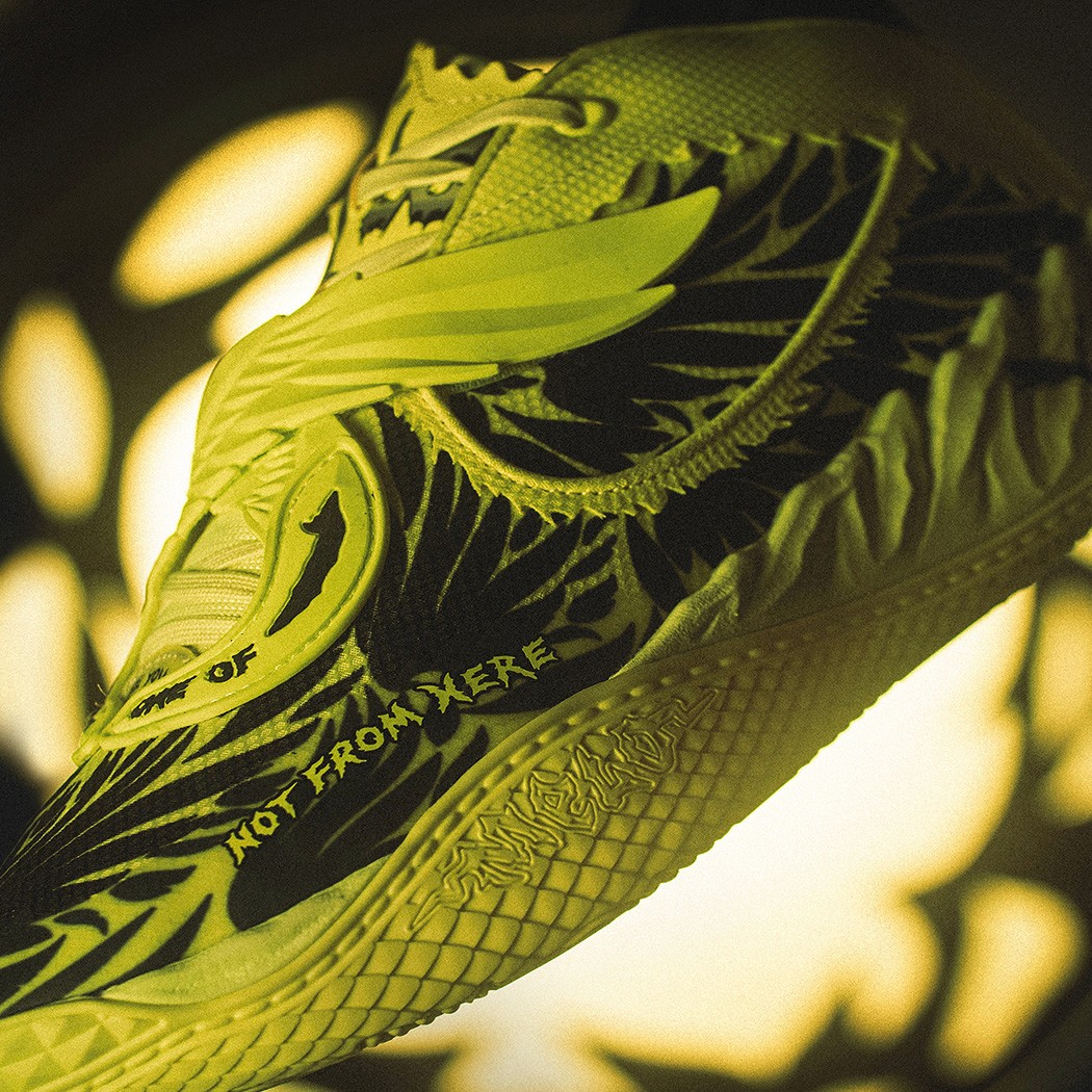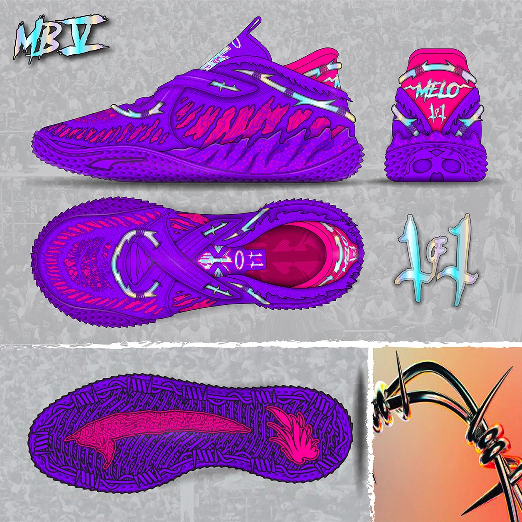 Melo's "Not From Here" tagline continues for his fifth signature shoe as he treats his NBA season as if he is a rockstar on tour. The MB.05 brings Melo's off-court styling, jewelry, and attitude on court.