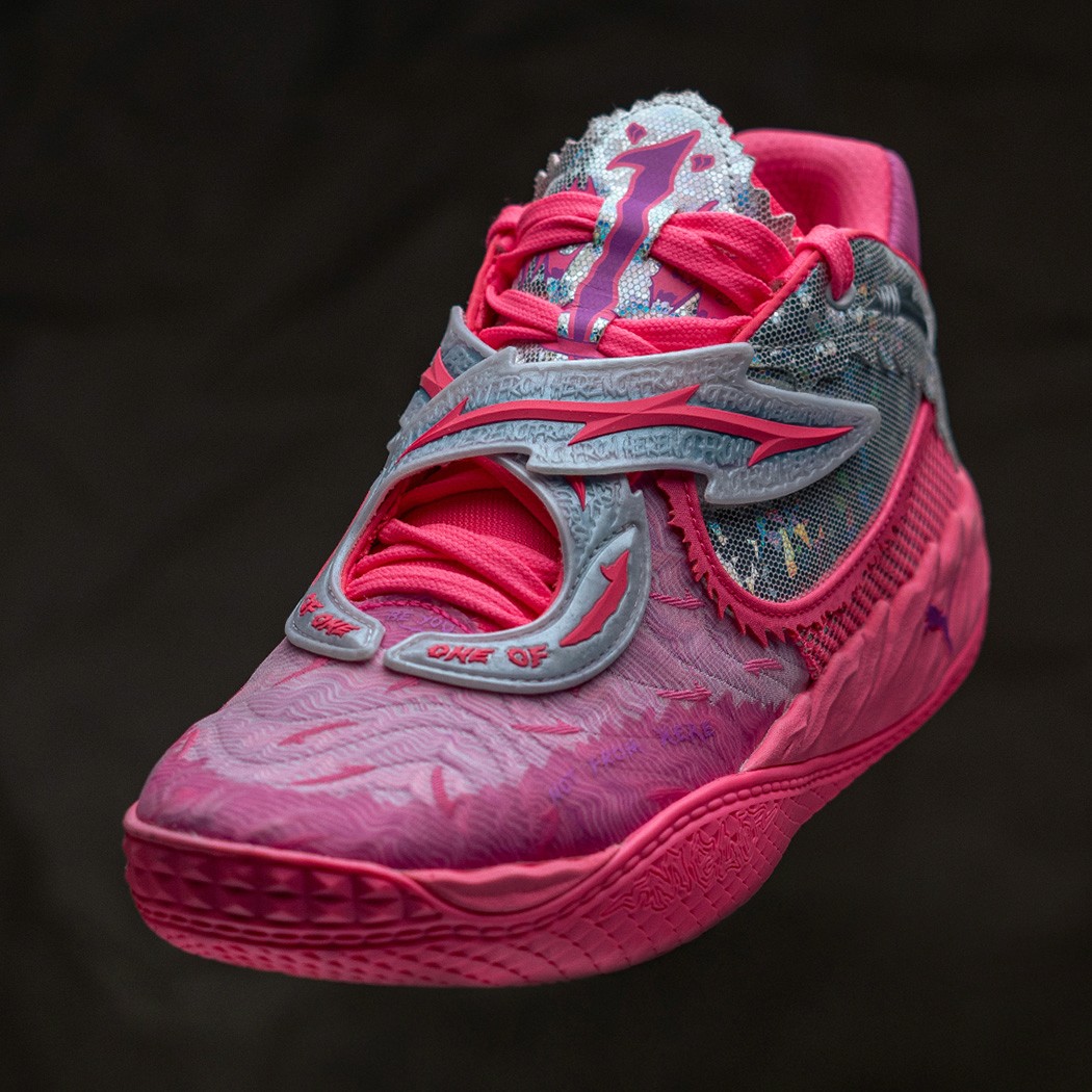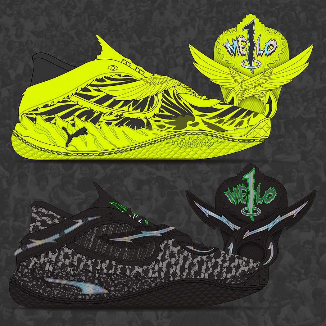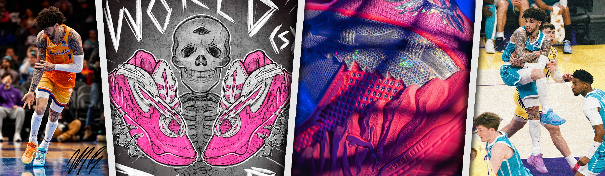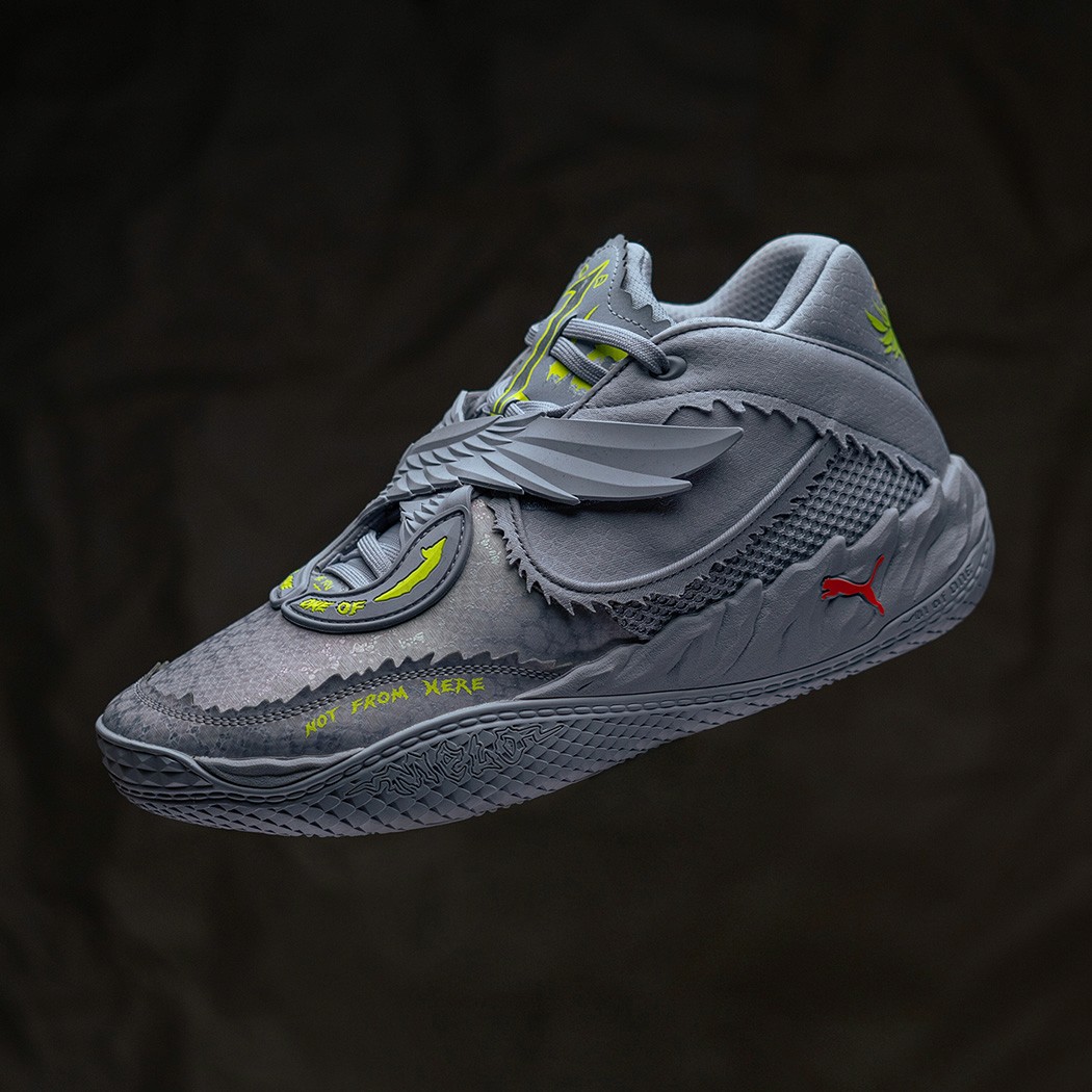 Melo's "Not From Here" tagline continues for his fifth signature shoe as he treats his NBA season as if he is a rockstar on tour. The MB.05 brings Melo's off-court styling, jewelry, and attitude on court.