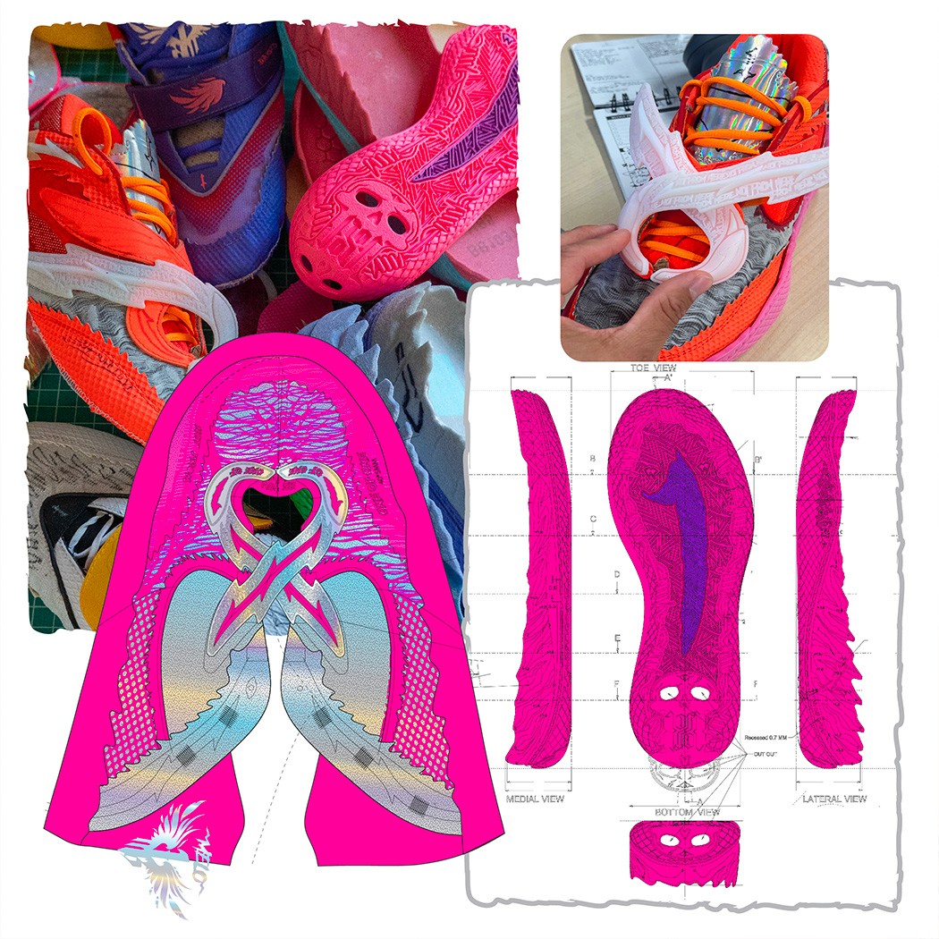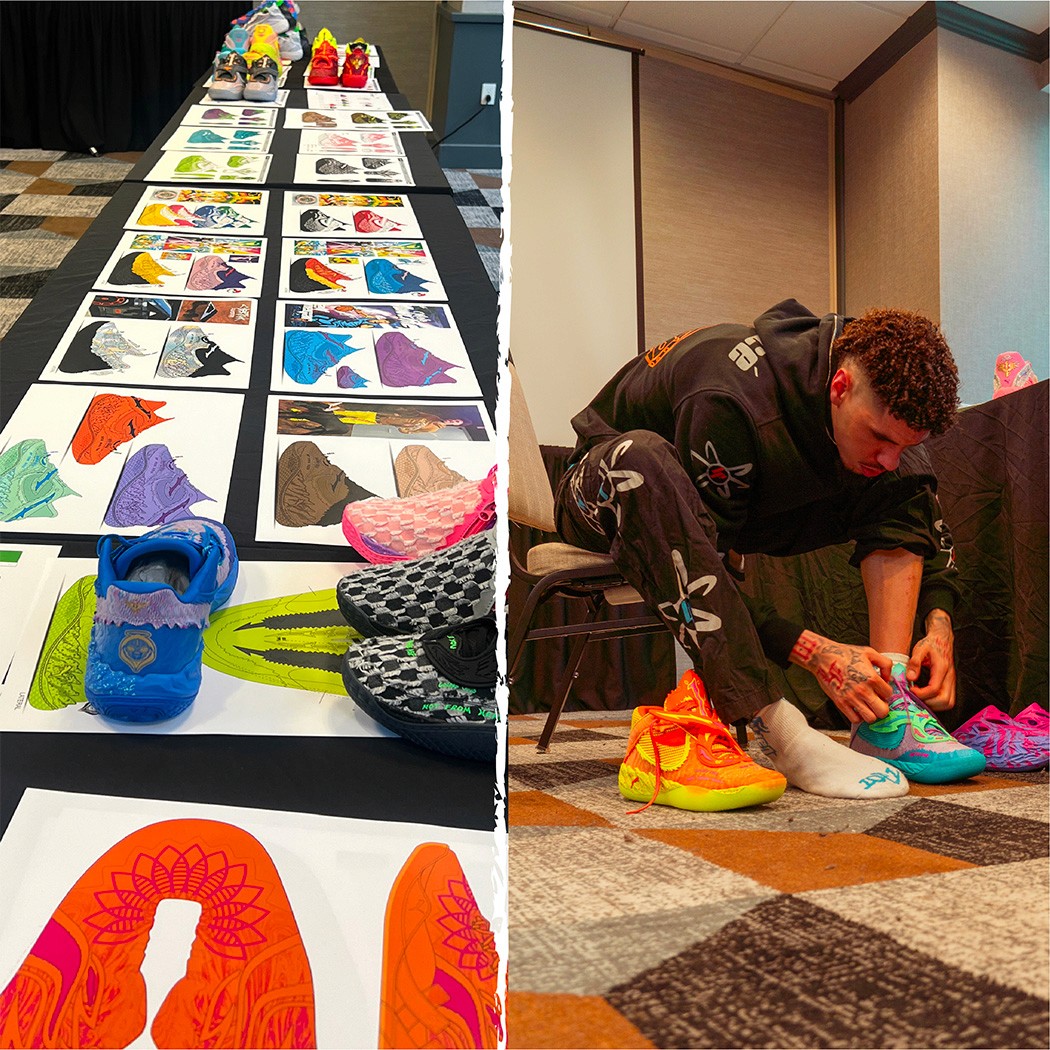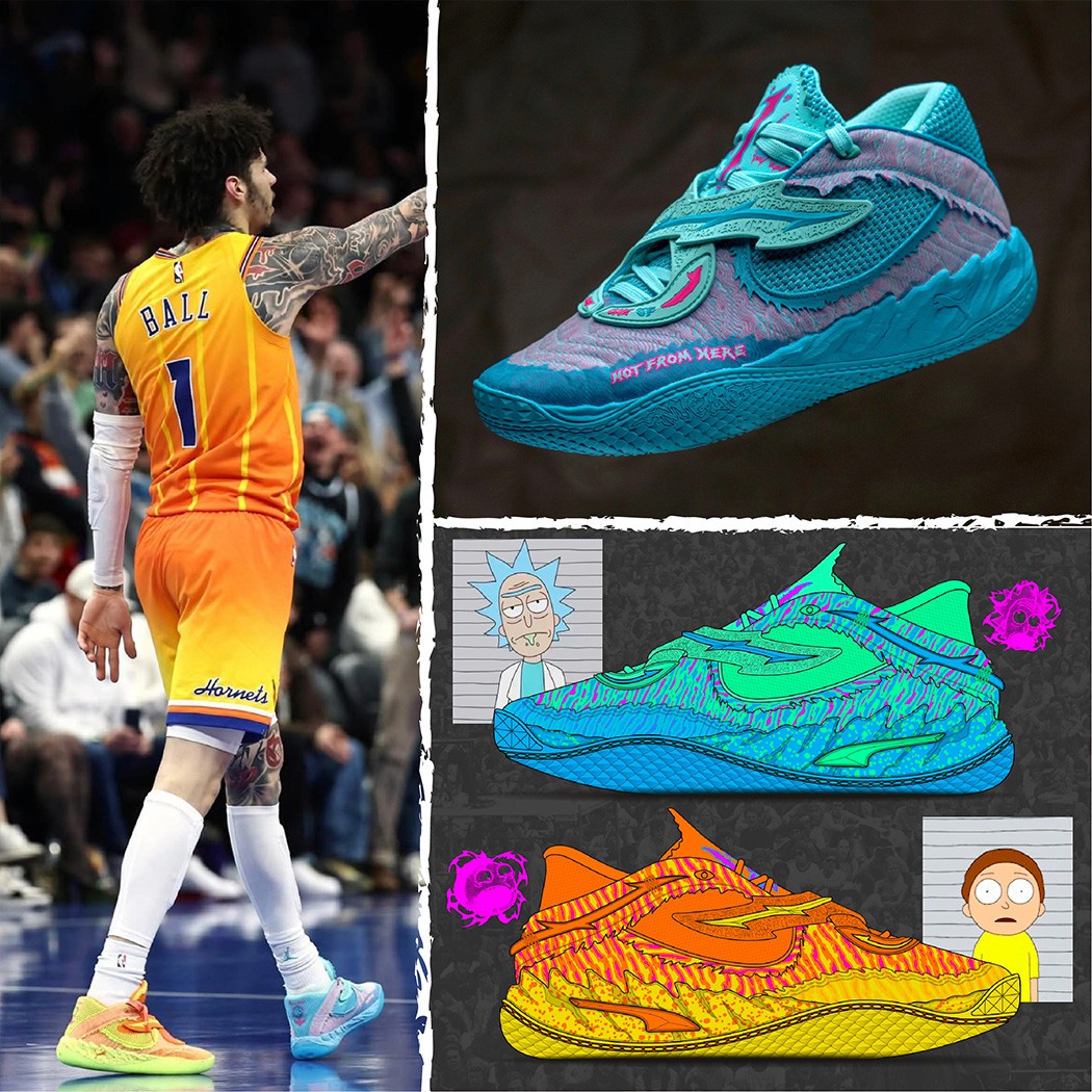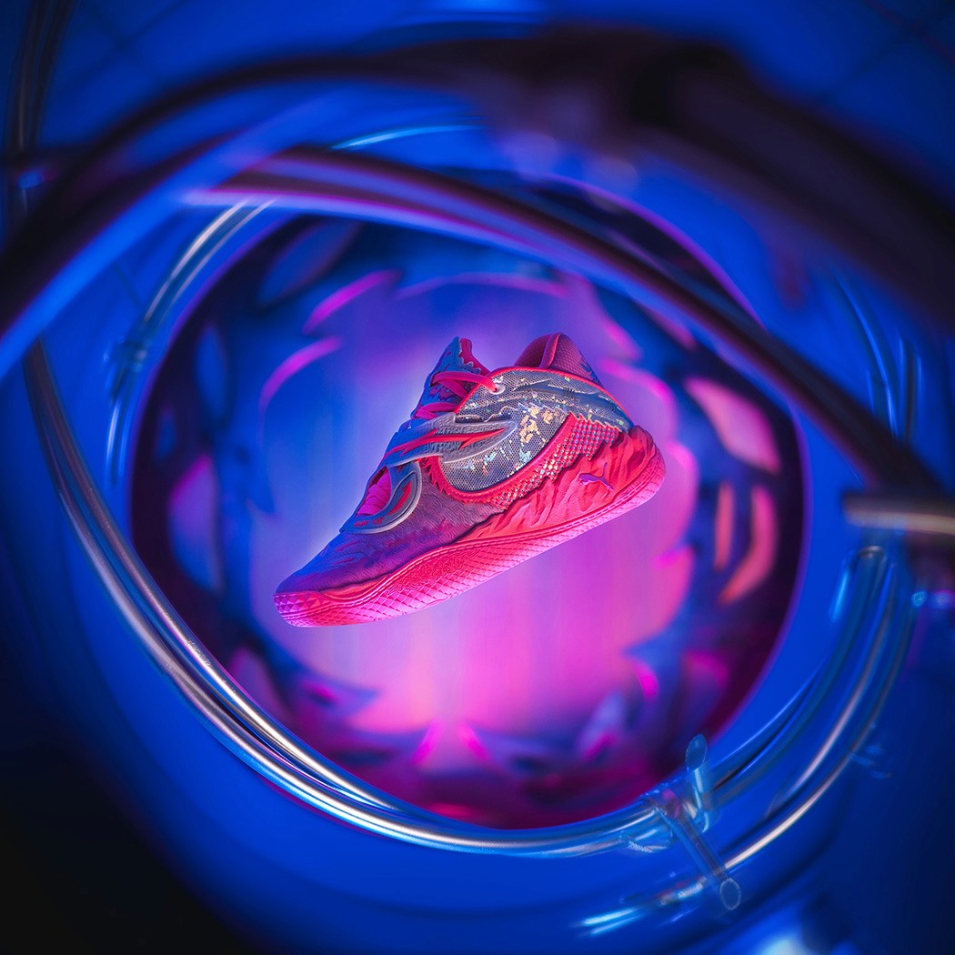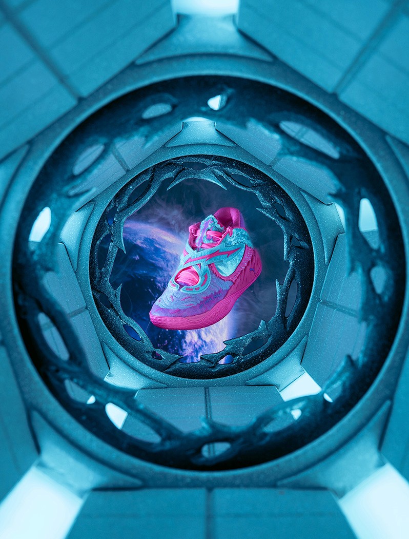 Melo's "Not From Here" tagline continues for his fifth signature shoe as he treats his NBA season as if he is a rockstar on tour. The MB.05 brings Melo's off-court styling, jewelry, and attitude on court.