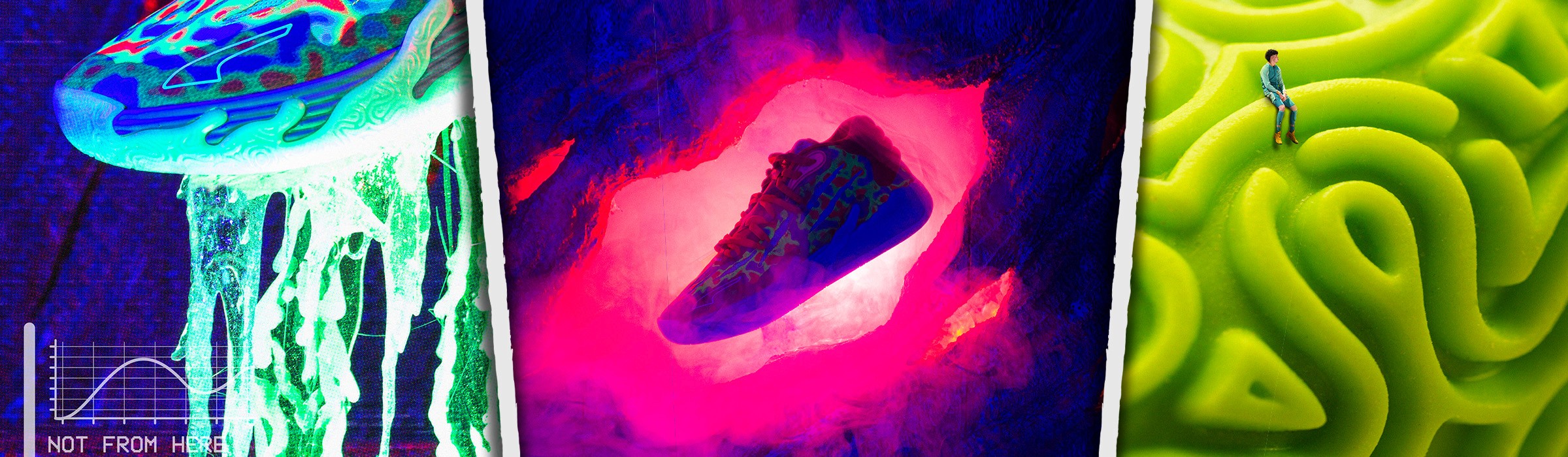 Continuing Melos " Not from here" saying, Melos third signature basketball shoe -MB.03, comes to us straight from the Alien Underworld. Toxic slime, alien textures, and danger around each corner. Product photos document traveling to this unseen alien world to capture the MB.03's in the natural ennviorment .