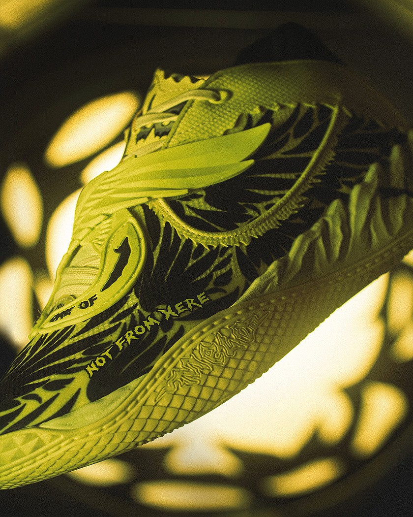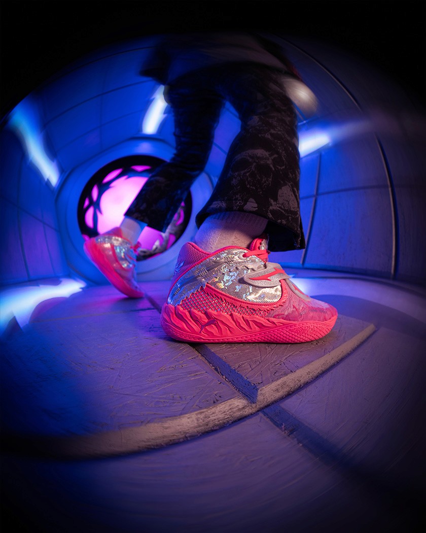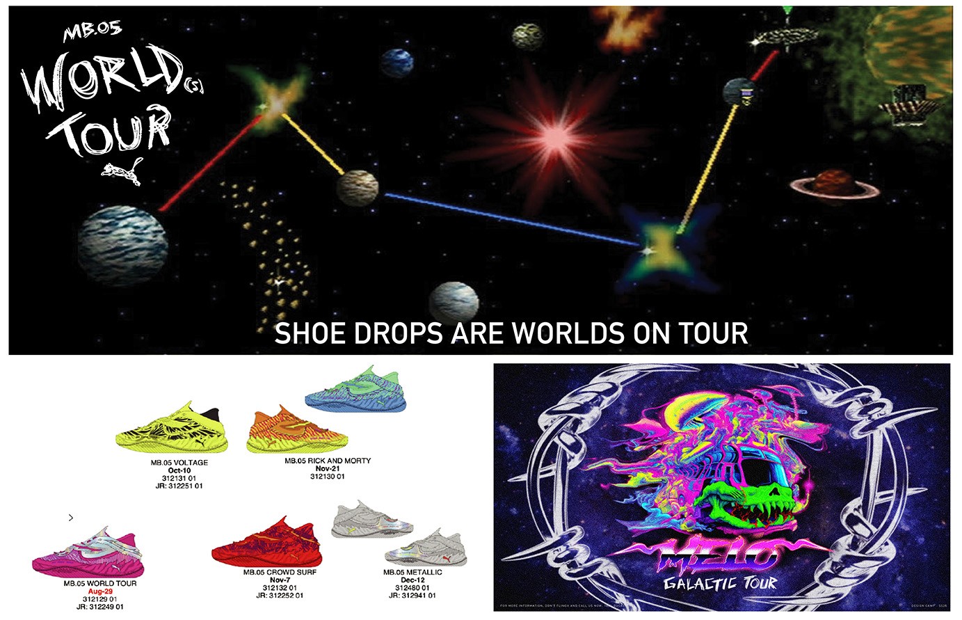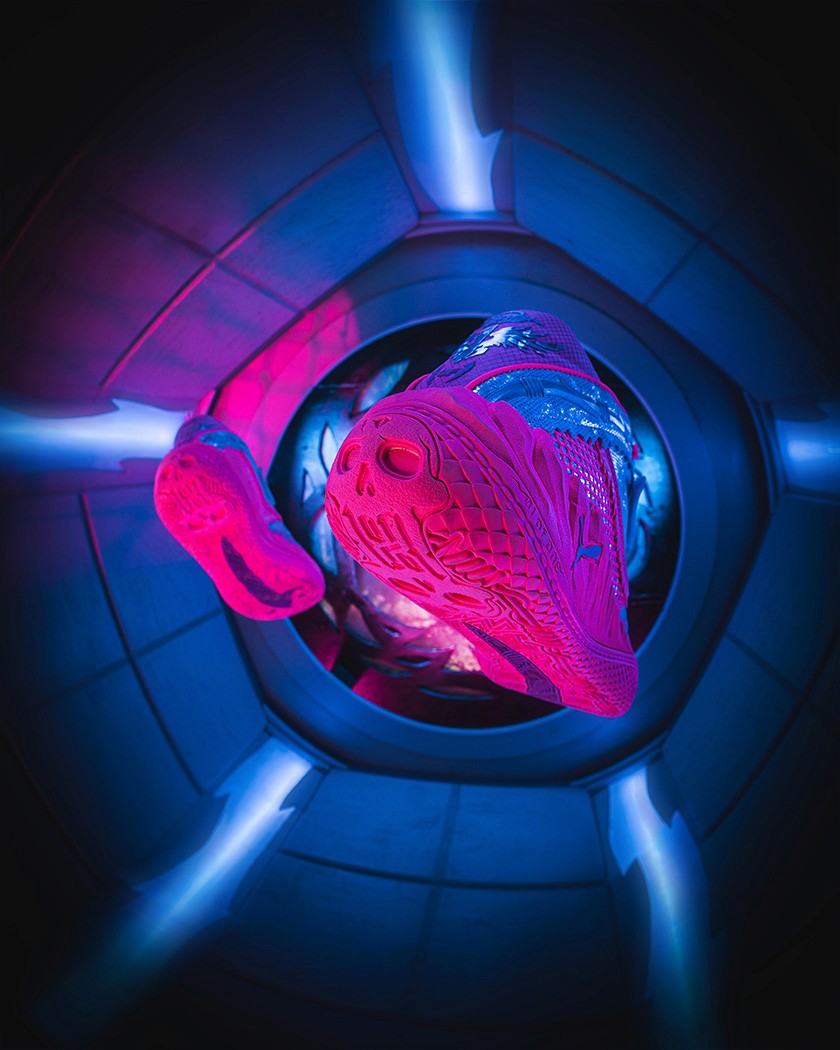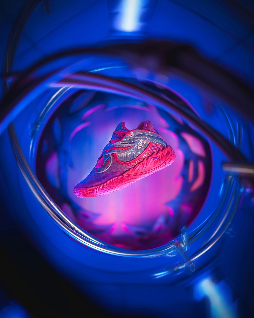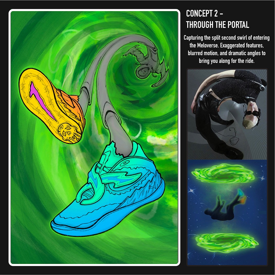 Melo's "Not From Here" tagline continues for his fifth signature shoe as he treats his NBA season as if he is a rockstar on tour. However, Melo's tour isn't just cross country: it's a galactic tour. Photos take place on his spaceship "tour bus" as he makes stops in different worlds for each shoe drop.