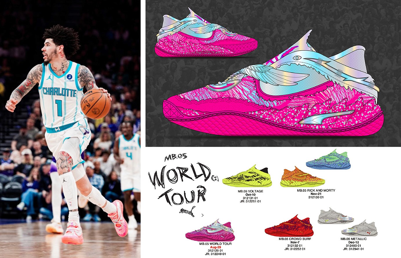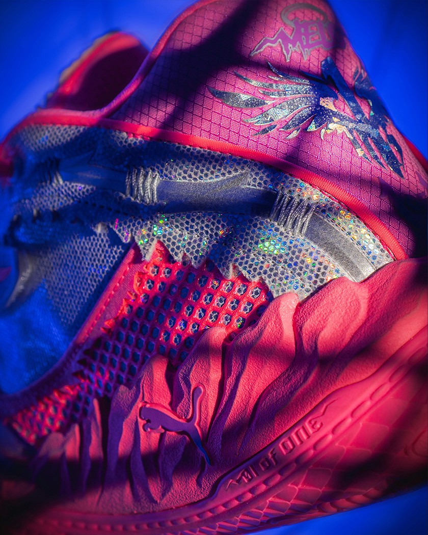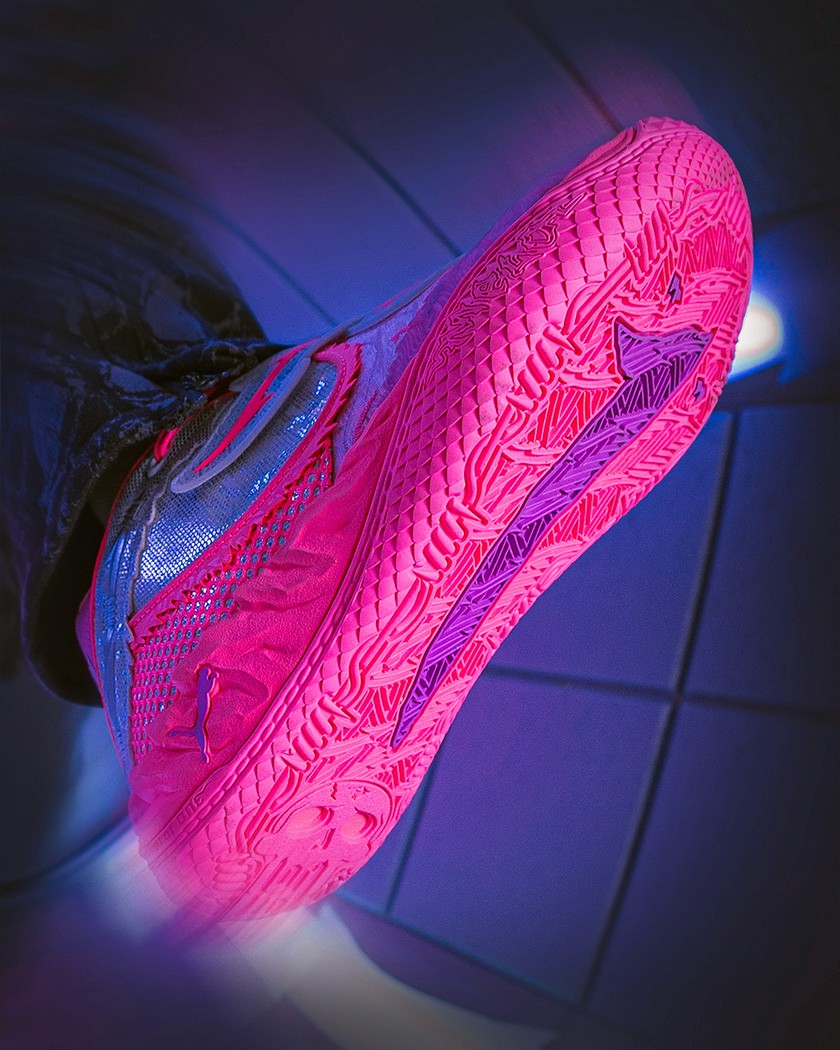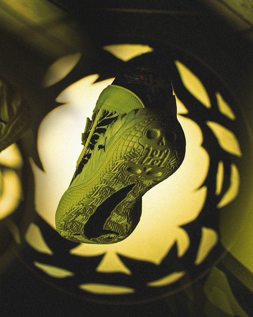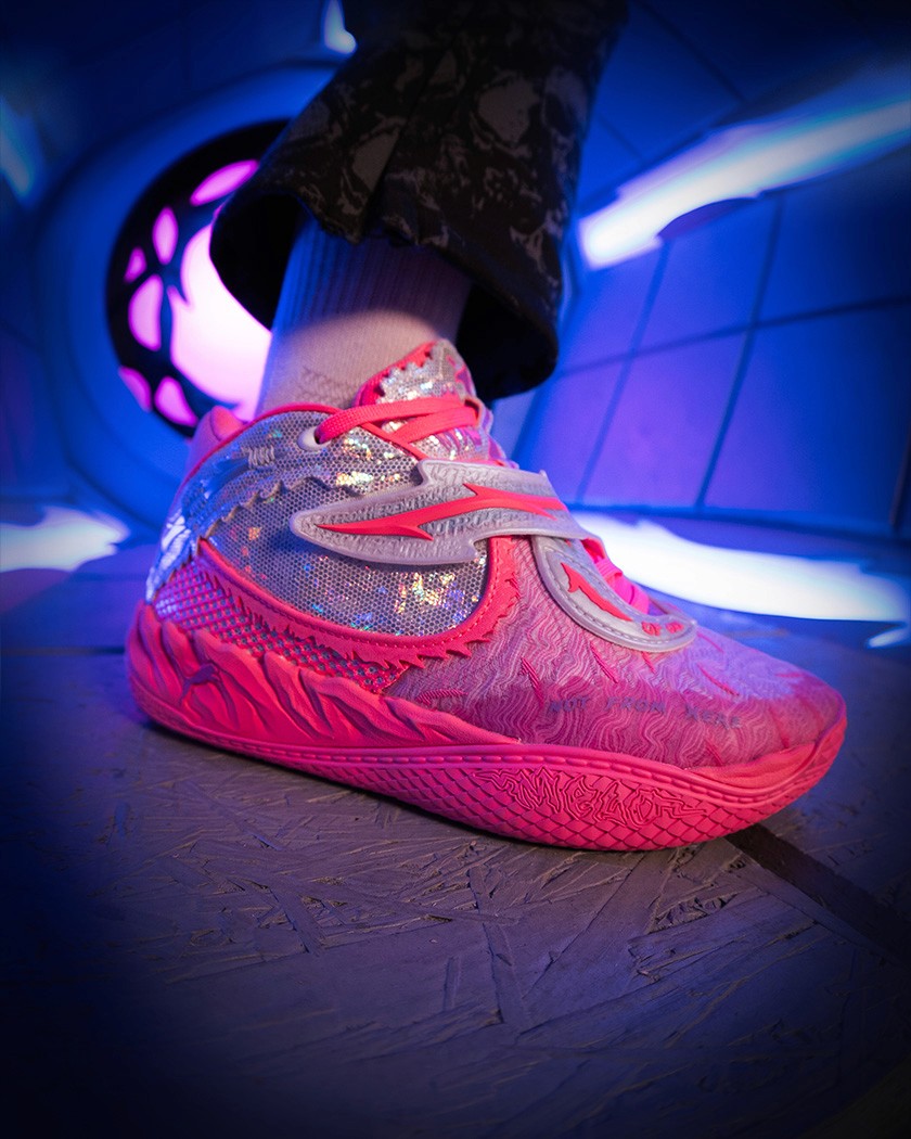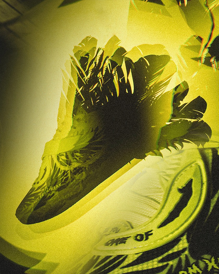 Melo's "Not From Here" tagline continues for his fifth signature shoe as he treats his NBA season as if he is a rockstar on tour. However, Melo's tour isn't just cross country: it's a galactic tour. Photos take place on his spaceship "tour bus" as he makes stops in different worlds for each shoe drop.