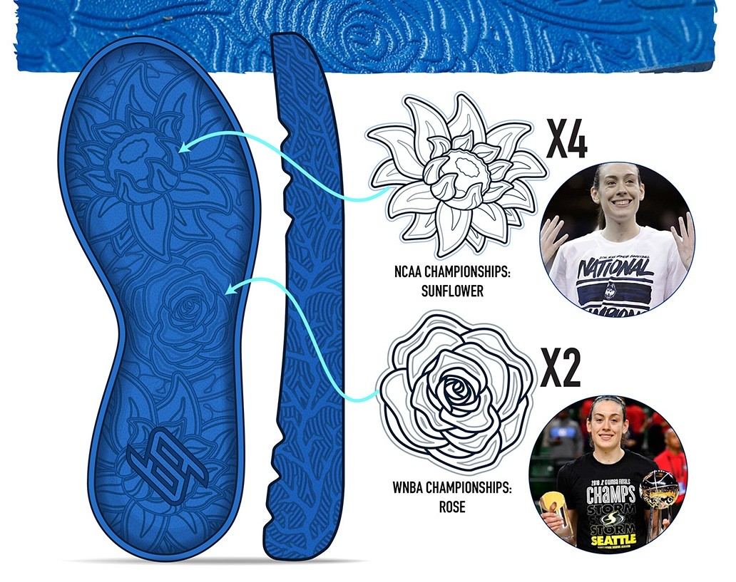 Product photos for Stewie 3 celebrates Breanna Stewart's flourishing career with flowers representing her different basketball moments around the world.